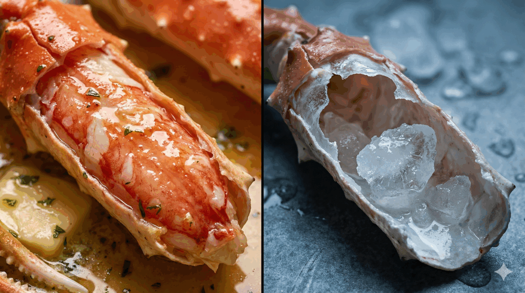 「足が1本折れただけ」ならお買い得です。しかし、中には**「水槽で長期間保管され、ストレスで身が痩せ細ったカニ」**が含まれていることがあります。 これは解凍するとドリップ(水)として旨味がすべて流れ出し、パサパサの繊維だけが残ります。これが「スカスカ」の正体です。